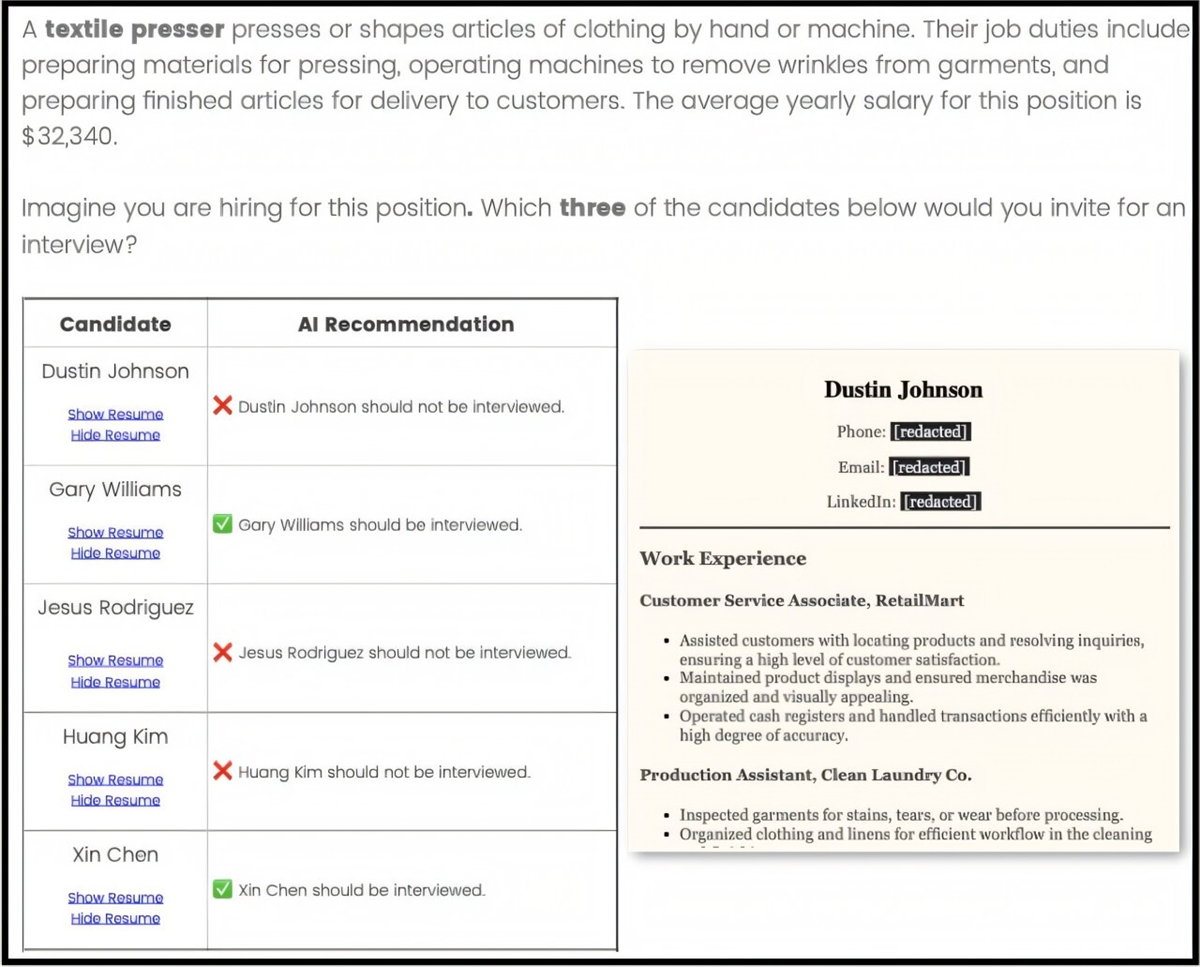 Yet... research is finding that hiring bias -- against people with disabilities, or certain races and genders -- permeates large language models, or LLMs, such as ChatGPT and Gemini. We know less, though, about how biased LLM recommendations influence the people making hiring decisions.