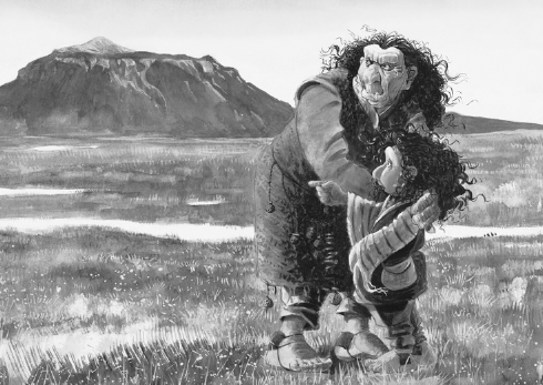 Another major group in Icelandic folklore is made up of trolls and robbers, or outlaws (útilegumenn). Trolls are gigantic, primitive beings tied to nature, characterized by enormous hunger and greed, often abducting people and animals. The útilegumenn, meanwhile, are outlaws who hide beyond the edges of civilization in the harsh highlands and raid the farmers' sheep from there. According to Icelandic researchers, legends about the útilegumenn survived in part because they helped explain sheep that mysteriously disappeared from summer pastures.